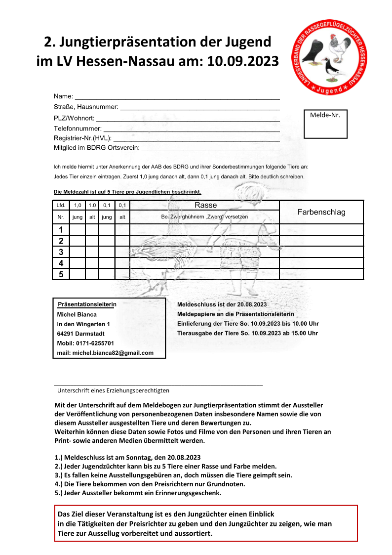 2. Jungtierpräsentation der Jugend im LV Hessen-Nassau am 10.09.2023 beim GZV Froschhausen